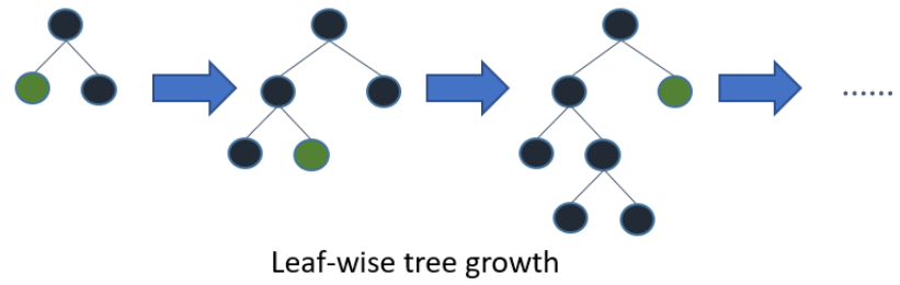 반면 LightGBM에서 채택한 leaf-wise(리프 중심 트리 분할)은 트리가 깊어지면서 소요되는 시간과 메모리 모두를 절약 할 수 있었습니다.