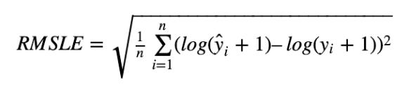 RMSE에 로그를 취해준 형태입니다. log0은 무한대로 수렴하므로 +1을 해주었습니다.